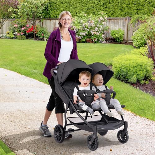 COSTWAY-Geschwisterwagen-klappbar-Zwillingswagen-mit-Verstellbarer-Rueckenlehne-Fussstuetze-Baldachin-Reisebuggy-mit-Liegefunktion-Tragbarer-Zwillingsbuggy-fuer-Baby-bis-3-Jahre-Dunkelgrau