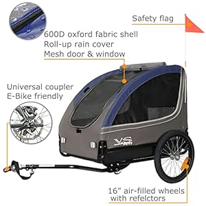 TIGGO-VS-Pets-L-Hundeanhaenger-fuer-Hunde-bis-35kg-Hunde-Fahrradanhaenger-gross-Fahrrad-Anhaenger-mit-Reflektoren-Leine