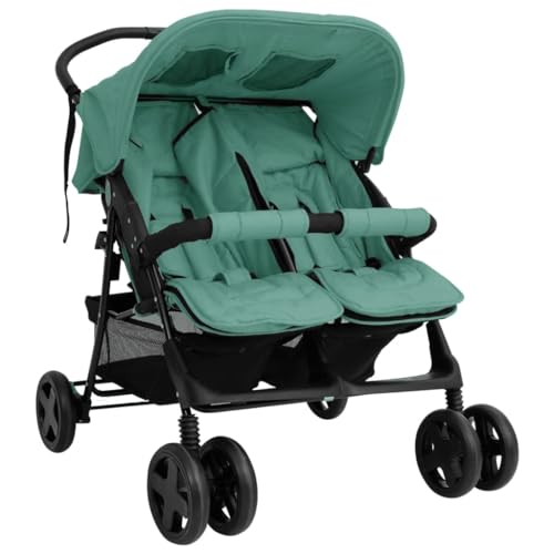 vidaXL-Geschwisterwagen-Klappbares-Design-Zwillingswagen-Kinderwagen-Baby-Kinder-Buggy-Zwillingsbuggy-Kinderbuggy-Reisebuggy-Gruen-Stahl